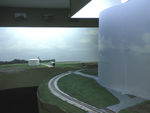 "After" image, showing the new balloon-shaped backdrop. It's made from 24" aluminum flashing, which is commonly used for window wraps with vinyl siding. I bonded it over the ends of the existing Masonite sections using E-6000 adhesive. By: Joe Atkinson