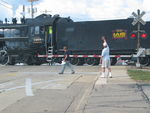 Steam train leaves Geneseo; the train is going away from us. By: Andy Brown
