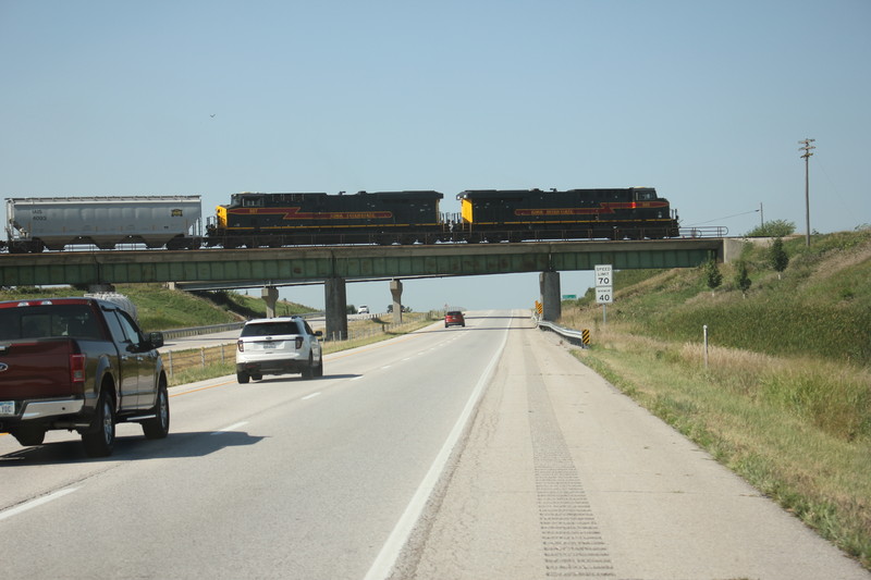 I've always liked this spot and had hopes of getting to the overpass on the other side for the Westbound on Tuesday, but luck wasn't on our side. I heard the meet going down at Earlham while we were making our way out of the Des Moines area and I knew it would be close. Too close in fact, and I was within 30 seconds of missing this shot too; just slowed down and pulled to the shoulder while shooting through the windshield...
