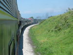 Curving into Malcom. The steam engine sounded great going west, but this GP38 didn't sound too bad either dragging our heavy train eastward.
