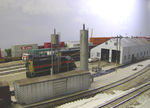 Looking south at the new east sand tower. I used an old Silver Streak 8000 gallon tank car body given to me by Bob Gretillat with a scratchbuilt base and sanding pipe.