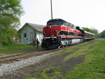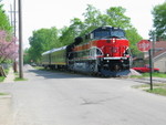 It's a far cry from a worn out E-unit and 2 ratty coaches, but 513 pretends to be the Quad City Rocket. By: Andy Brown