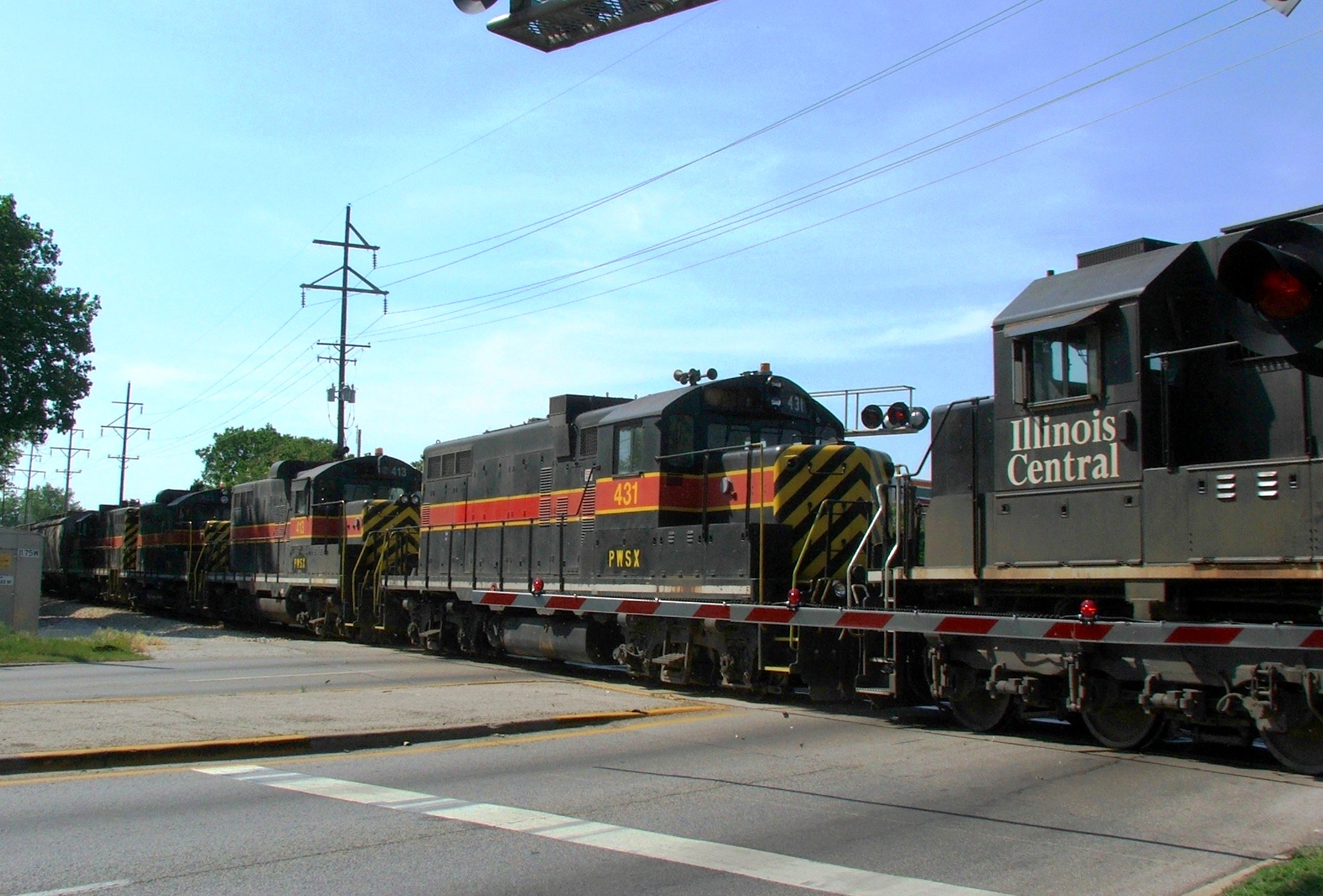 PWSX 431 and 3 others trail two IC SD70's, Berwyn, IL