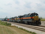 IAIS 402 leads CBBI under an ex RI signal bridge at Houbolt Rd. 07/13/04 By: Chris Lastovich