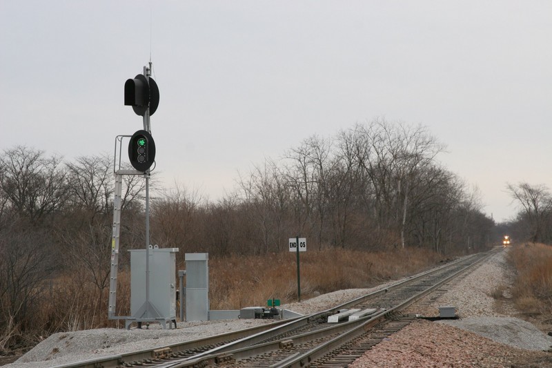 When a train approaches, they key up the radio and enter a code sequence. The switch responds over the radio, reporting its alignment, and also clears the signal heads - all of them go green, no matter which way the switch is lined.