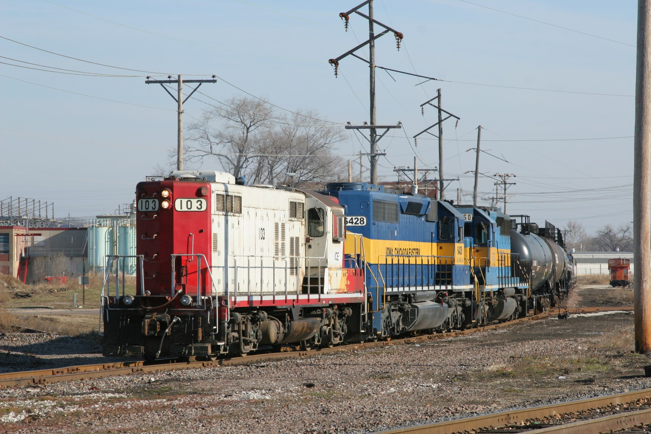 And the oldest diesel of the day goes to the leader of the IC&E local - GP9 #103. Here, the local waits to use the single track at East Moline