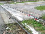 Here are the unfortunate results of a train running over a crossing arm knocked over by a motorist! At Broadway st. near Blue Island crossing. By: Andy Brown