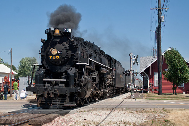 NKP 765 passes the depot at Geneseo, IL.