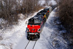 The westbound at Eagle Avenue with the GEVO's running long hood forward. By: Frank Grizel