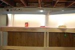 The two benchwork segments are joined with a removable bridge in front of the electrical panel to comply with code.