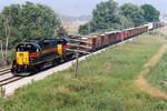 The westbound passes the site of the former BCR&N overpass at Stockton, Aug. 30, 2005. By: Andy Brown
